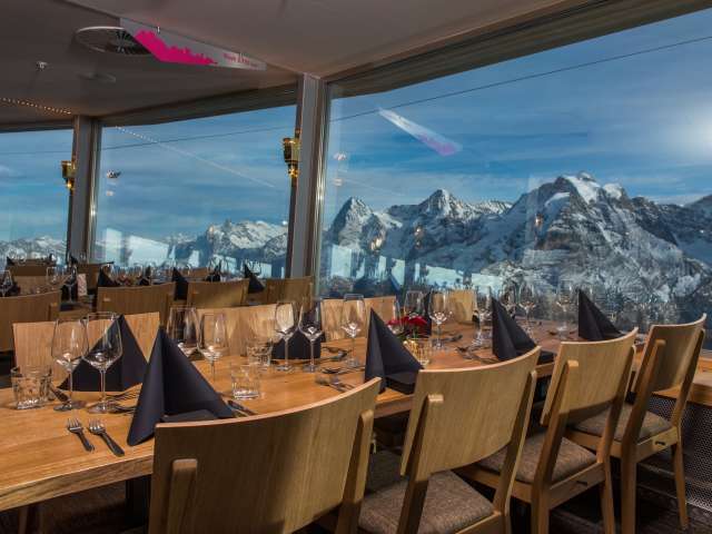 Das Drehrestaurant befindet sich auf dem Gipfel des Schilthorns. Es ist bequem von Mürren mit der Luftseilbahn erreichbar.