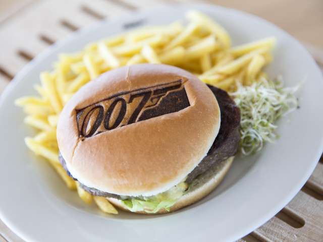 Fotografierst du gerne dein Essen? Dann empfehlen wir dir denn 007-Burger – ein echter Hingucker. Er ist mit Rindfleisch, Poulet, Lachs- oder Gemüseschnitzel erhältlich.