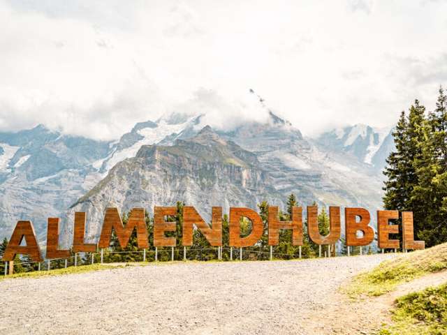 Der Allmendhubel ist ein Paradies für Familien mit Kindern. In nur vier Minuten führt eine Standseilbahn auf den Ausflugsberg, wo das rustikale Panoramarestaurant mit grosser Sonnenterrasse und feinsten Schweizer Spezialitäten lockt – und die Aussicht auf Eiger, Mönch, Jungfrau und alle anderen Berner Alpen mit ihren Gletschern.