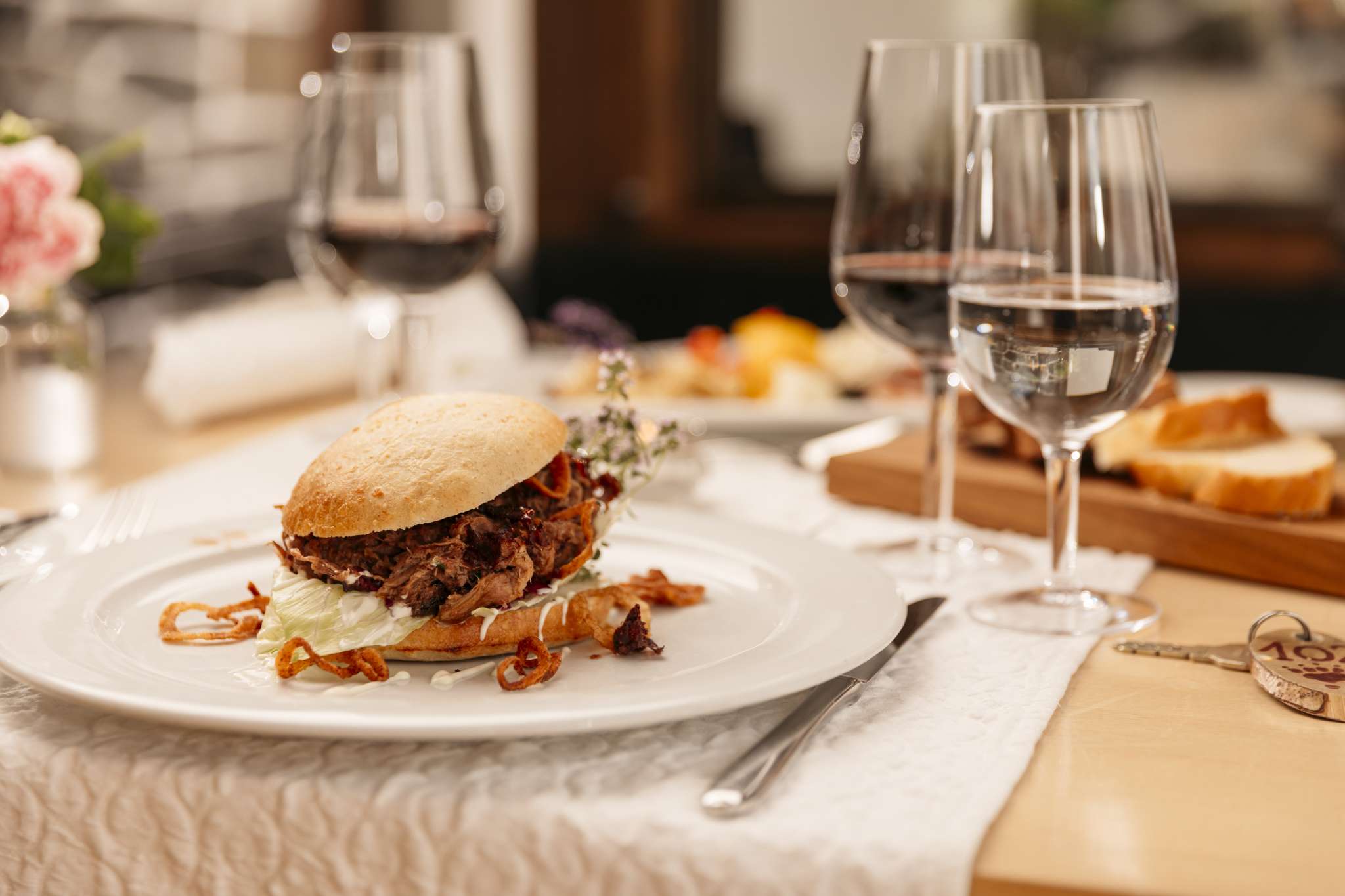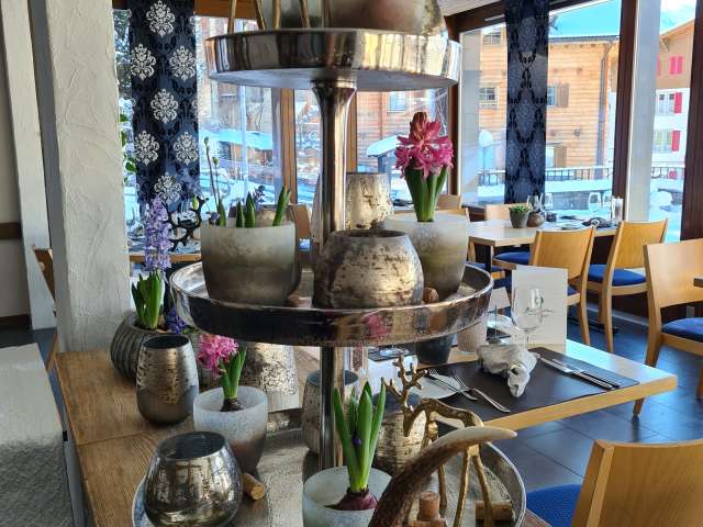 Klassischer und zeitloser Raum mit grossen Fensterflächen spiegeln die Offenheit der heimischen Kochkultur und geben dem herausragenden Niveau unserer Küche einen authentischen und ansprechenden Rahmen. Traditionelle Schweizer Gerichte mit mediterranen und internationalen Spezialitäten gehen eine sündhaft gute Symbiose ein, die sowohl Gäste als auch Einheimische schätzen. Das Ergebnis ist „très bon“