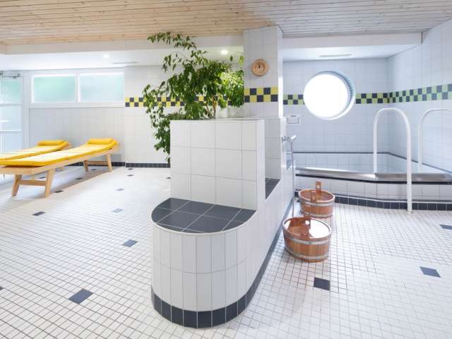 Ein grosses Hallenbad, Whirlpool, eine finnische Sauna (90°C und trockene Luft) und ein Sanarium (60°C und tropisches Klima) laden zum Entspannen ein.