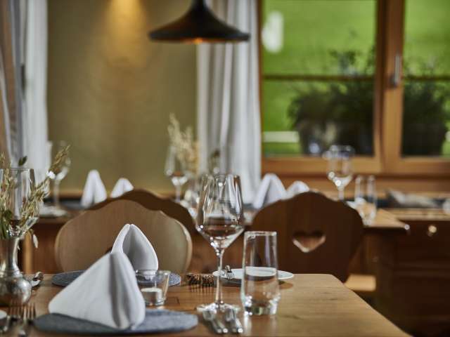 Kulinarisch werden hochwertige regionale Gerichte und Produkte aufgetischt. Unser Küchenchef, Sebastian Schuster, veredelt mit seinen Mitarbeitern möglichst Erzeugnisse aus der Region. Das bedeutet, dass die Herkunft aller verwendeten Produkte bekannt ist.