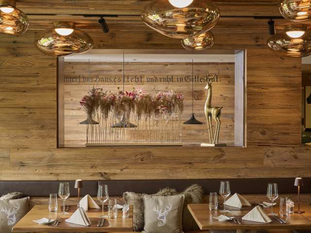 Mit viel Liebe zum Detail vereinen sich Tradition und Moderne in den neu renovierten Restaurants und an der Bar. Zeitgenössisches Design zwischen Chalet-Stil, Alphütte und Kuhstall. Die Themen Bergsport und Wald begleiten dich durch das ganze Haus und werden in den Restaurants und an der Bar gekonnt und bis ins letzte Detail umgesetzt.