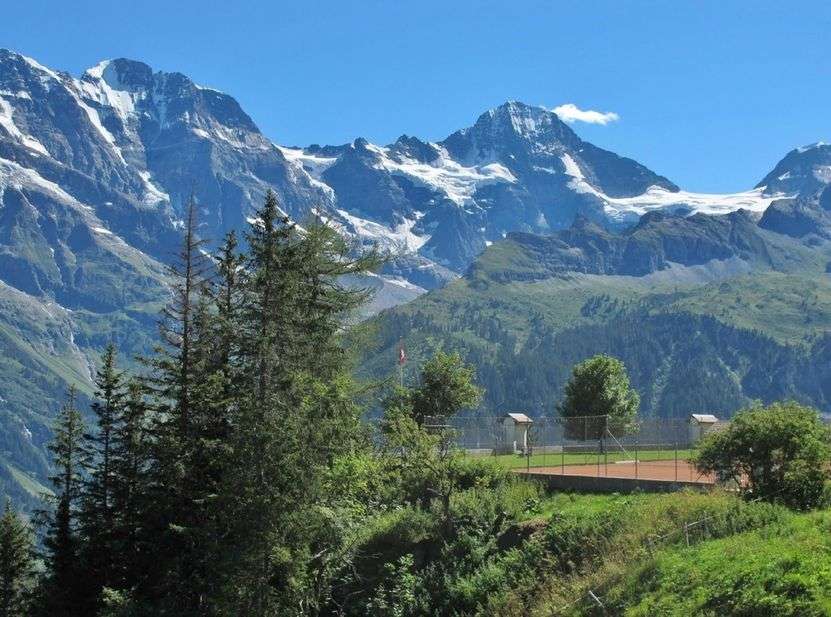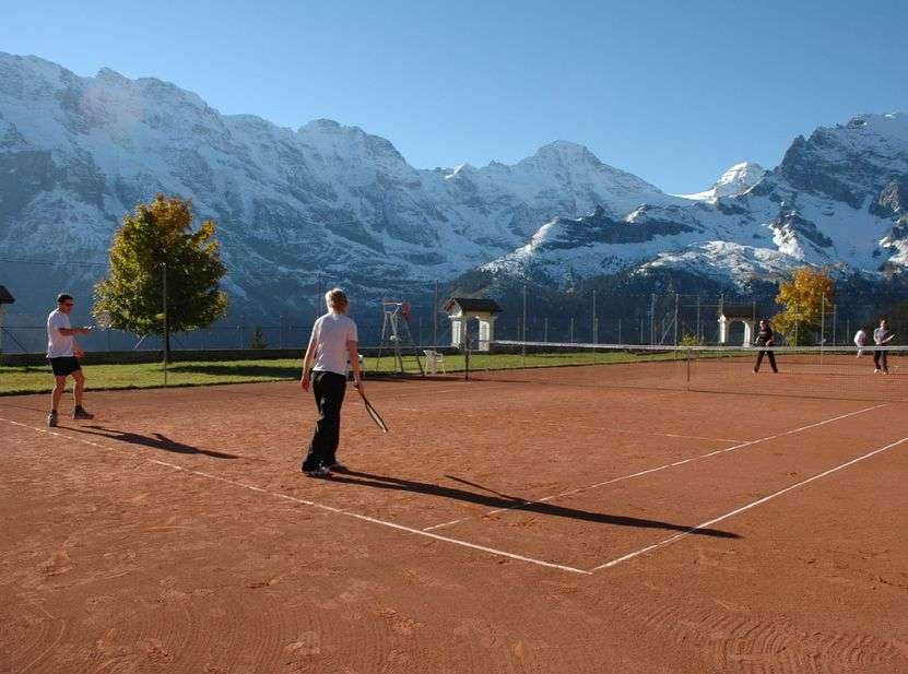 Das Sportchalet Mürren bietet 4 Outdoor-Sandtennisplätze mit der wohl spektakulärsten Aussicht ins Lauterbrunnnental. Die Plätze können einzeln gemietet werden. Die Netze sind im Sommer immer gespannt.