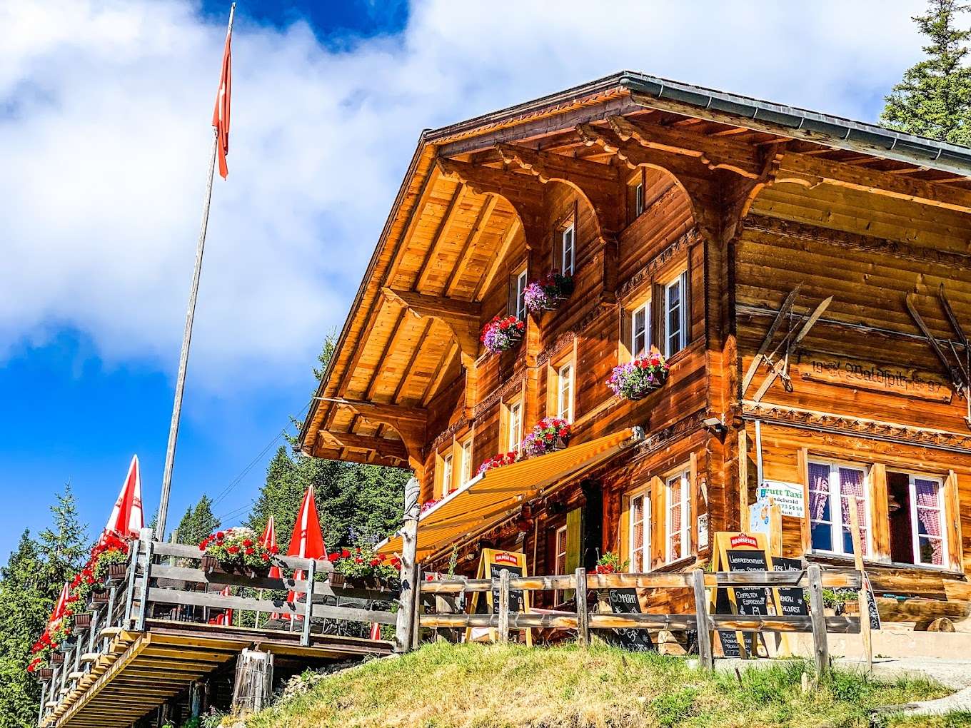 Das rustikale Berggasthaus Waldspitz mit seinem traumhaften Panorama liegt hoch über Grindelwald. Lass dich auf der herrlichen Sonnenterrasse oder im gemütlichen Stübli mit lokalen Spezialitäten verwöhnen.