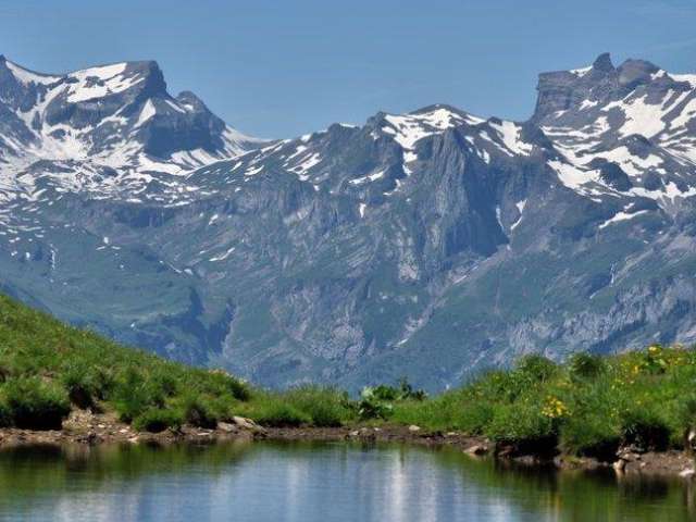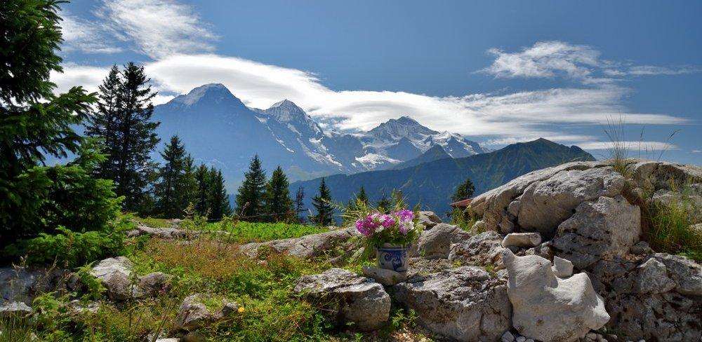 Mit der einmaligen Aussicht auf Eiger, Mönch und Jungfrau.