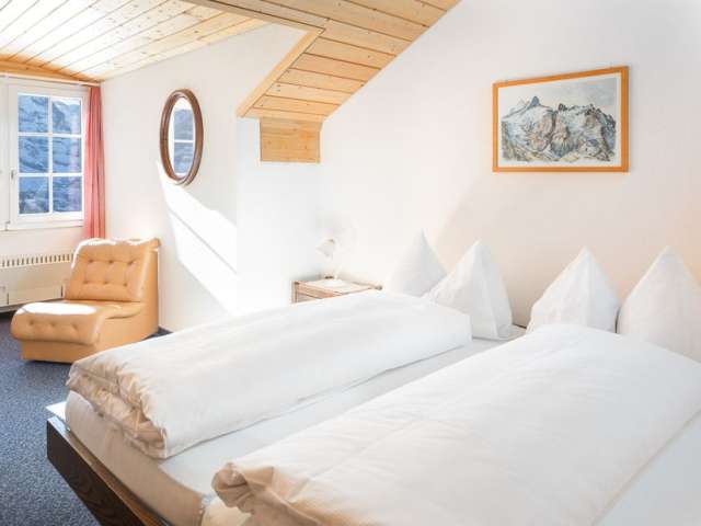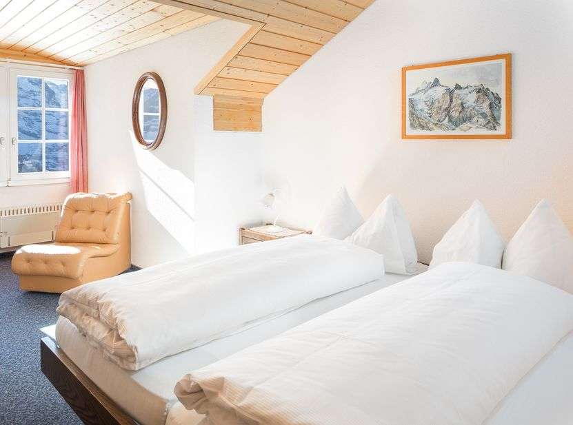 Gönne dir eine Auszeit und träume auf 2225 m ü. M. – im Berghaus Männlichen kann in einem Einzel-, Doppel- oder Mehrbettzimmer übernachtet werden.
