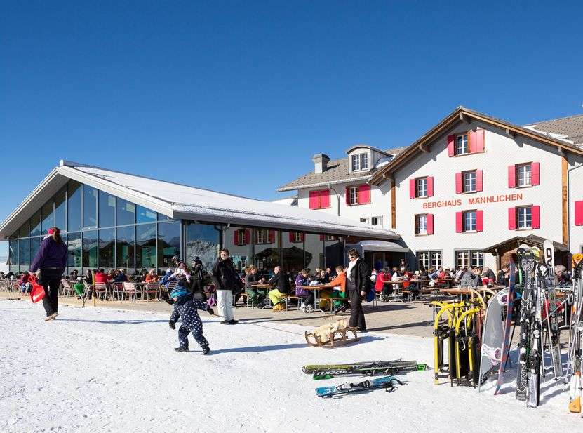 Der Treffpunkt im schönen Ski- und Wandergebiet Männlichen - Kleine Scheidegg. Das einmalige Bergpanorama steht auf der Sonnenterrasse aber auch im Restaurant auf der Karte.