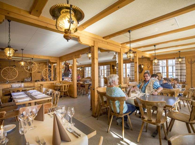 Das Bergrestaurant Bussalp mit bedientem Restaurant und grosser Sonnenterrasse, AlpLounge mit Sofas und Liegewiese, Liegestühlen und einem Kneipp-Bad laden nach einer Wanderung ein, die Seele baumeln zu lassen. Dabei verwöhnt dich unser Service- und Küchenteam mit traditionellen Hüttengerichten bis hin zu kulinarischen Streifzügen.
