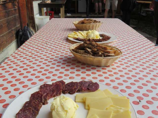 Nach dem Einblick in die Käserei gibt es für alle Gäste ein schmackhaftes Frühstück in den Bergen.