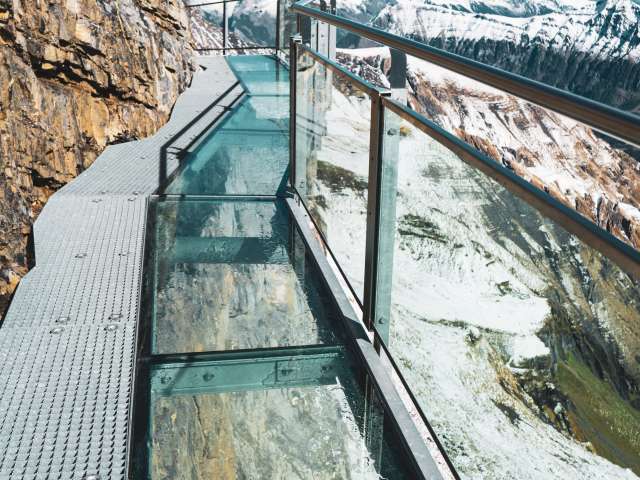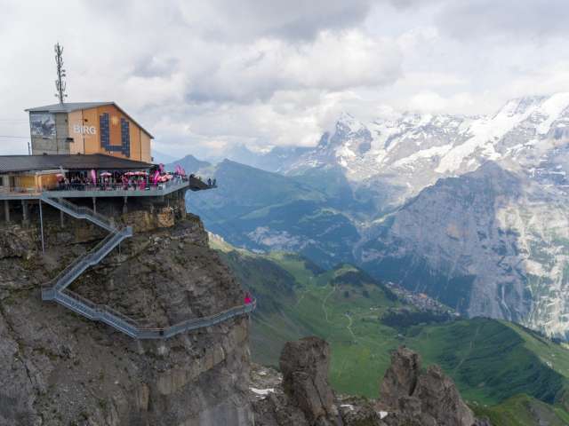 An stolzer Lage auf dem Felsmassiv – 1000 m über Mürren – befindet sich Birg, die Mittelstation der Seilbahn zwischen Mürren und dem Schilthorn. Diese Station sorgt für viel Adrenalin, denn hier gibt es verschiedene ausgesetzte Bauten. Es lohnt sich eindeutig, hier auf dem Weg zum Schilthorn einen Stopp einzulegen um sich die Attraktionen anzusehen.