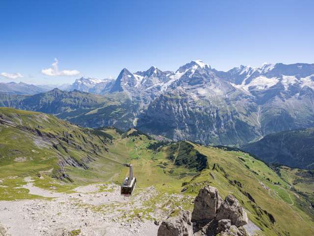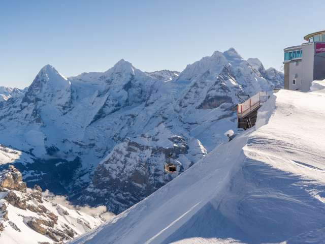 Das Bistro mit grosser Sonnenterrasse sowie zwei Attraktionen mit bester Sicht auf Eiger, Mönch und Jungfrau erwarten dich hier.