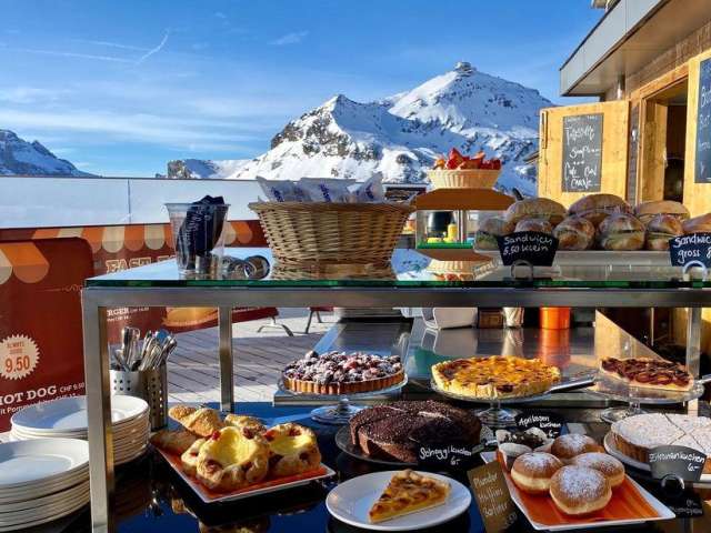 Lass dich im Bergrestaurant täglich mit vielfältigen Gerichten verwöhnen. Auf der grossen Sonnenterrasse befindet sich ein Quick Corner mit Grill- und Wokstation. Deinen perfekten Sitzplatz findest du drinnen im Bistro wie auch draussen auf der Terrasse.