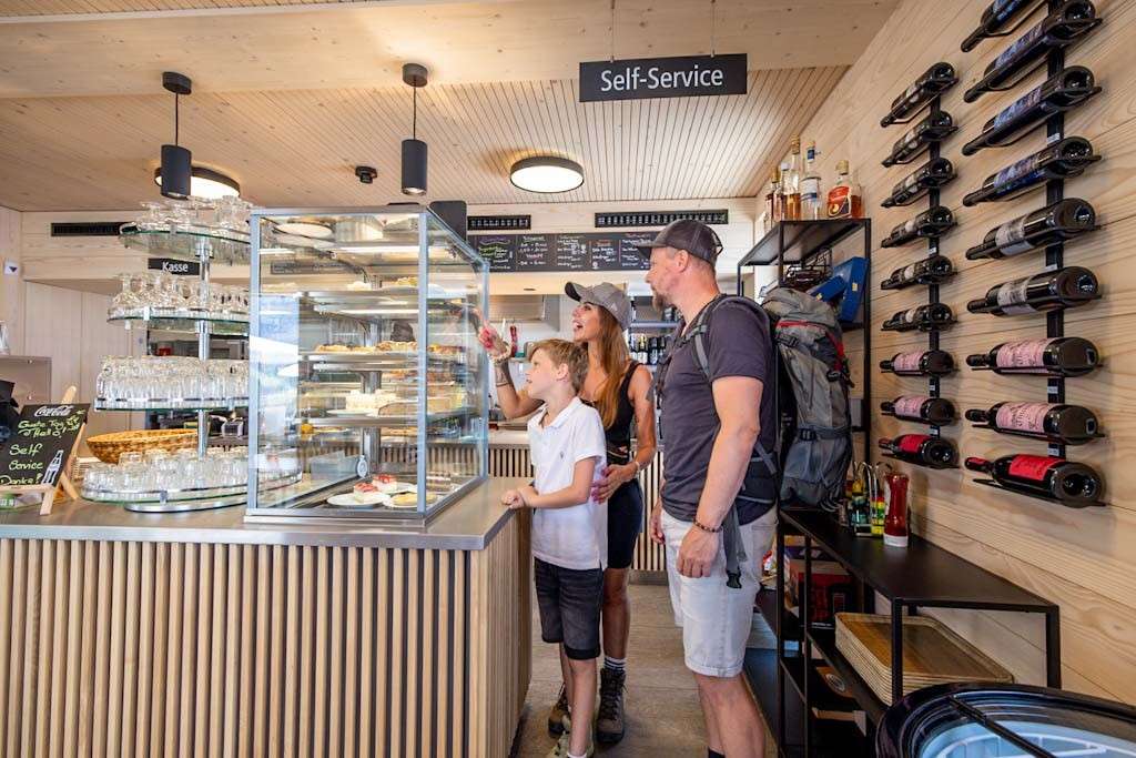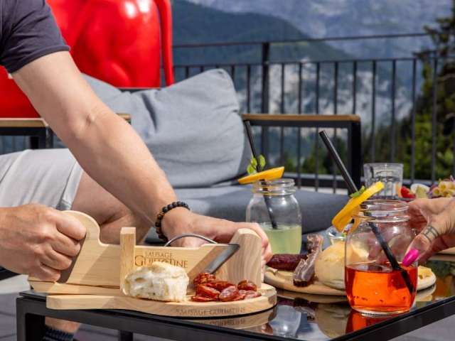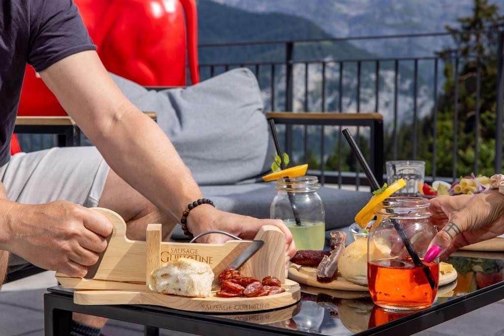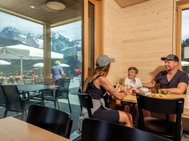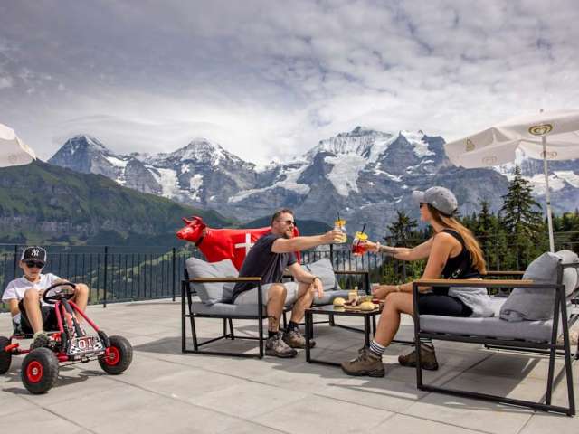 Ob ein entspannter Wanderausflug oder eine abwechslungsreiche Bergabfahrt mit dem Bike: Eine kleine Pause tut immer gut. Direkt auf dem Dach der Seilbahnstation Grütschalp lädt das charmante Bistro zum Verweilen ein. Es dient als Startpunkt für panoramareiche Wanderungen und einen Freeride-Trail für erfahrene Mountainbiker*innen. Ganzjährig wird du hier mit einem kleinen, aber durchdachten Angebot an Snacks und Getränken verwöhnt – sowie einer atemberaubenden Aussicht auf das Dreigestirn Eiger, Mönch und Jungfrau. Hier bleibt man gerne mal auch etwas länger sitzen.