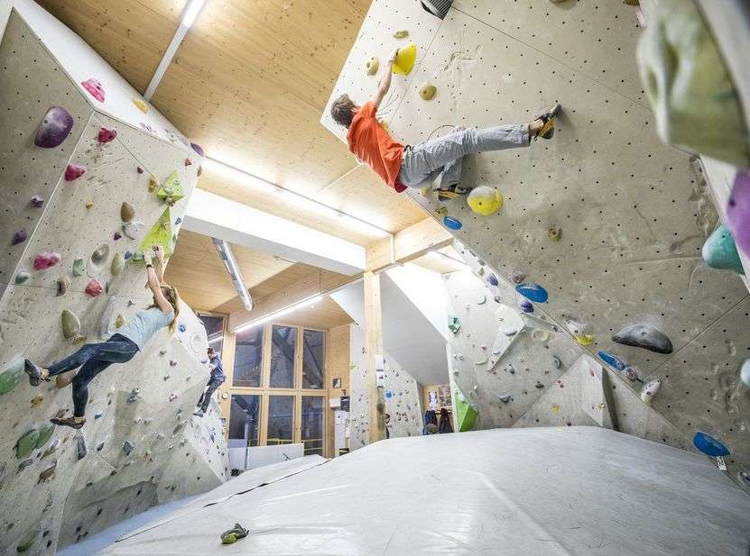 An den Boulderwänden mit einer Fläche von 170 Quadratmetern kann auf Absprunghöhe so geklettert werden, wie man es sich in der Höhe nie zutrauen würde. Knifflige Kletterbewegungen können ausprobiert, die Fingerkraft trainiert und die Koordination und Körperbeherrschung mit viel Spass geschult werden.