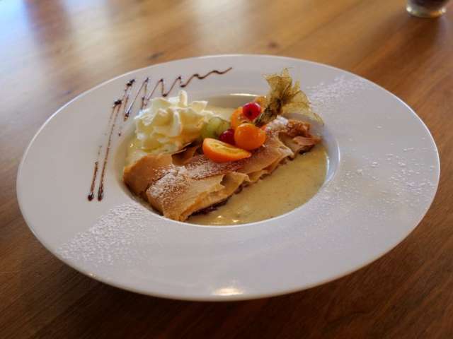 Lokal und authentisch ist die Philosophie und das, was auf der Speisekarte steht. Spezialitäten von der umliegenden Landwirtschaft – einfach, originell und überraschend angerichtet. Täglich frischer Kuchen aus hauseigener Patisserie laden ein, bei traditioneller und modern Interpretierter Esskultur die Seele baumeln zu lassen.