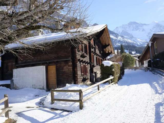 Wunderschön renovierte Erdgeschosswohnung direkt an der Skipiste. Nur 6 Gehminuten vom Bahnhof Wengen und Dorfzentrum entfernt.