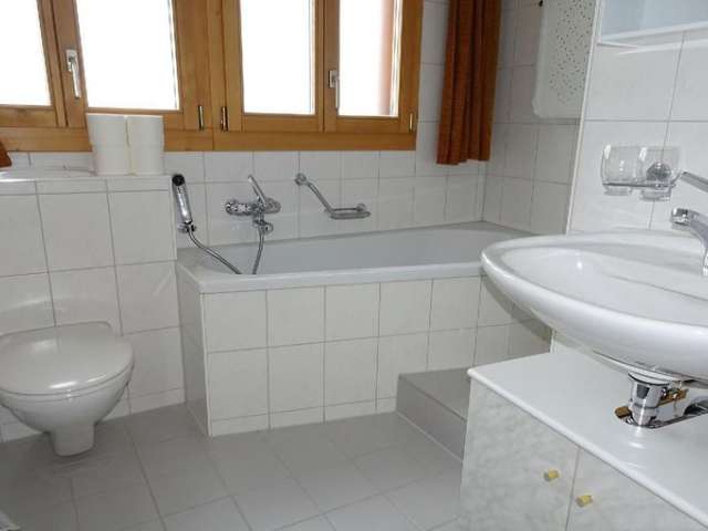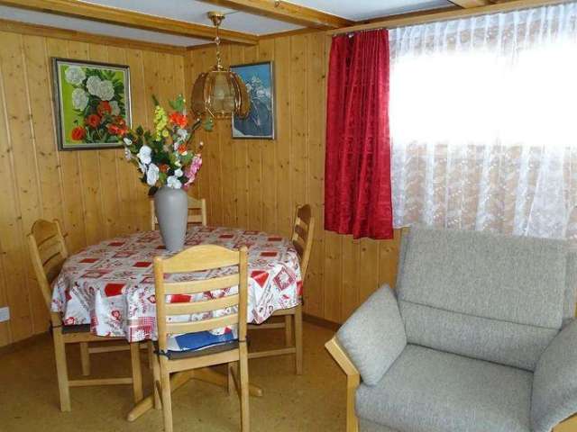 Heimelige 3-Zimmerwohnung im Dorfzentrum von Mürren, 70 m2, geeignet für 2-4 Personen. Hübsches Wohnzimmer mit TV/Radio, grosszügiges Schlafzimmer und kleines 2-Bettzimmer, separate gut ausgestattete Küche, Bad mit Badewanne, Dusche und Waschmaschine. Küche und Bad sind renoviert. Kleine Terrasse. Nichtraucherwohnung, Haustiere sind erlaubt.