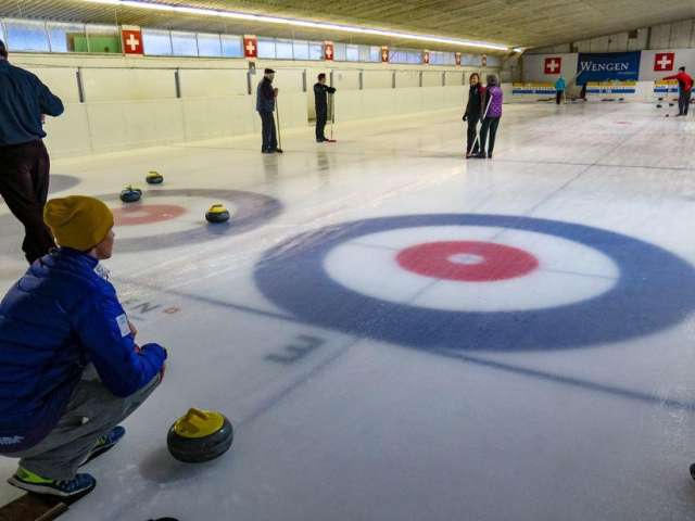 Wage dich aufs Glatteis – beim Curling in Wengen, ob in der Halle oder unter freiem Himmel.