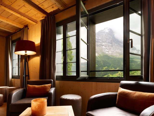 Unsere Lodge «Eiger View» beherbergt 8 grosszügige Hotelzimmer mit privatem Badezimmer, davon 2 Suiten, 2 Deluxe Zimmer, 2 Superior Zimmer, 2 Standard Zimmer sowie 3 Studiowohnungen im Dachgeschoss. Alle Studios sind ausgestattet mit Badezimmer, Küche, Wohnbereich und separatem Schlafzimmer. Sieben Zimmer verfügen über einen direkten Anschluss zu umlaufenden Terrassen mit Blick auf die Bergkulisse, vor allem auf dem Eiger.
