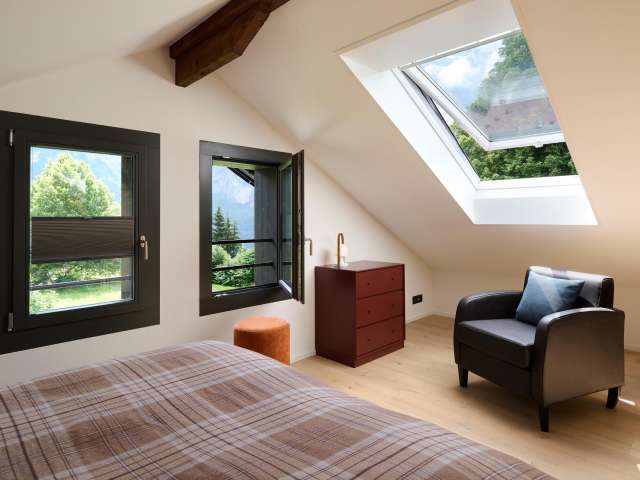 Wir freuen uns sehr, unsere Gäste an einem der wohl schönsten Orte in den Alpen begrüssen zu dürfen – ein Chaletbau mit einer atemberaubenden Aussicht auf den Eiger und die umliegenden Berge. Die Lodge befindet sich hoch über Grindelwald inmitten eines 4’000m2 grossen Gartens und bietet auf 1’000m2 total 25 Gästen ein unvergleichliches Ferienerlebnis. Zusammen mit einer alten Scheune, einem historischen Brunnen und einem schönen Baumbestand definiert sich ein «Kraftort» am Fuss des mächtigen Eigers.