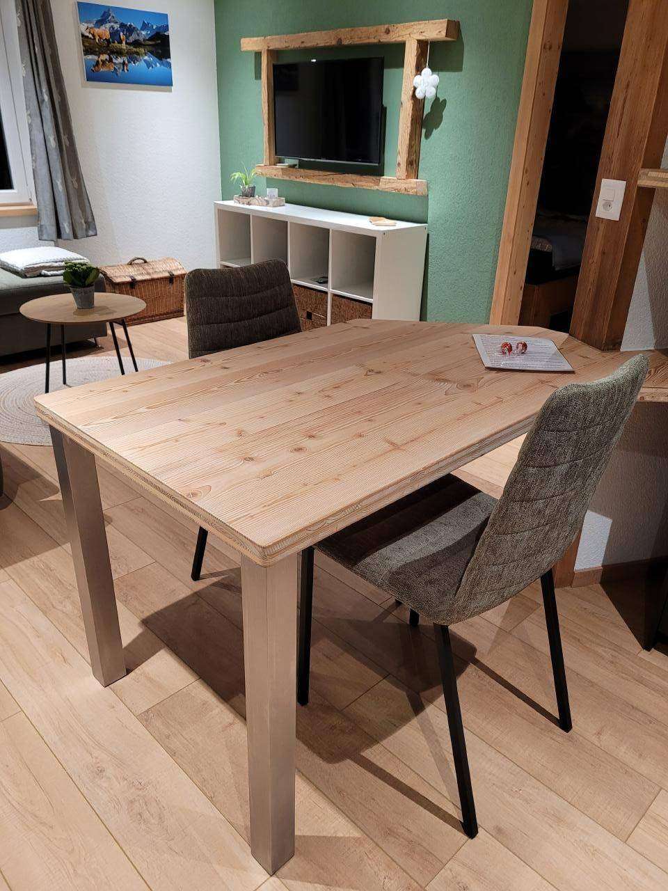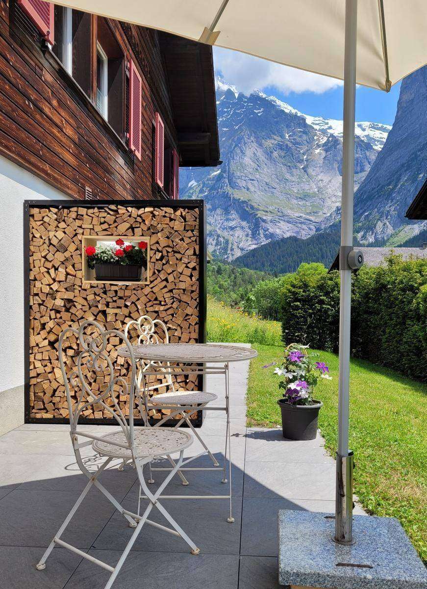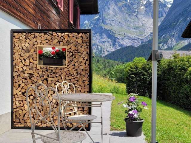 Neue Ferienwohnung im Aelpli Style. Die teilweise mit Altholz eingerichtete Ferienwohnung macht gemütlich und passt gut in unsere traumhafte Landschaft. Auf der Terrasse hast Du eine wunderschöne Sicht auf den berühmten Eiger. Wir sind zentral und doch ist es ruhig. In 10- 15 Min bist Du zu Fuss im Zentrum wo Du Einkaufsmöglichkeiten und Restaurants aller Art hast und am Bahnhof wo Du mit dem Zug Richtung Interlaken, zum Grindelwald Terminal kommst wo Du die Bahn Richtung Männlichen oder Eigergletscher nehmen kannst. In nur 2 Minuten erreichst Du die nächste Busstation, von dort du in alle Richtungen fahren kannst. Hier findest Du der perfekte Ausgangsort zum Wandern in unsere fantastische Bergwelt. Im Winter bei guten Schneeverhältnissen kannst du mit den Ski direkt bis zum Haus fahren.