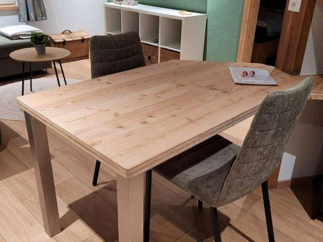 Die Altholzrückwand mit integriertem Landschaftsbild das durch LED Streifen beleuchtet wird, bewirkt eine sehr romantische Stimmung. Einen Kleiderschrank bietet genügend Platz um Kleider zu verstauen.
