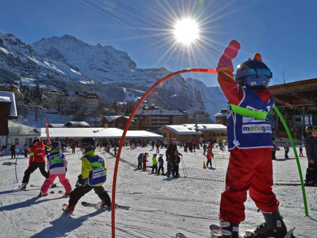 Keine Warteschlangen und in wenigen Minuten von jedem Hotel und Chalet erreichbar: Das Übungsgelände für Schneesporteinsteiger*innen befindet sich im Herzen von Wengen, einem Dorf mit Weltcup-Tradition. Die Nähe zu den traditionellen Lauberhornrennen beflügelt dich sichtlich in deinem Lernfortschritt.