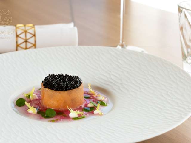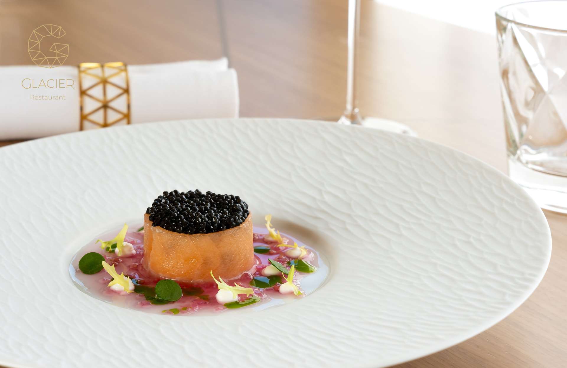 Gönnen Sie sich eine kulinarische Reise im Restaurant Glacier, das vom GaultMillau mit 16 Punkten ausgezeichnet wurde. Unsere Speisekarte verkörpert eine Verschmelzung von alpiner Tradition und französischer Finesse. Inspiriert durch die Vision des Küchenchefs Paul Cabayé entstehen unsere saisonalen Degustationsmenüs. Wählen Sie zwischen 5 oder 7 Gängen, und zelebrieren Sie mit jedem Gang, die sorgfältig ausgearbeiteten Aromen der Bergwelt.