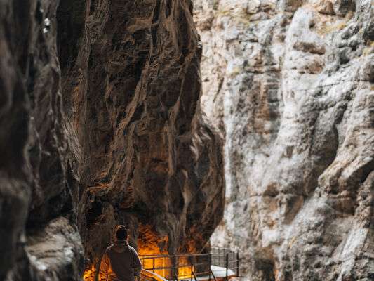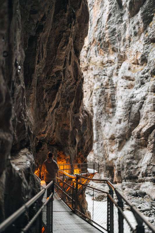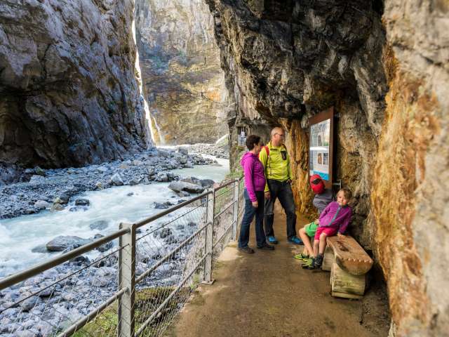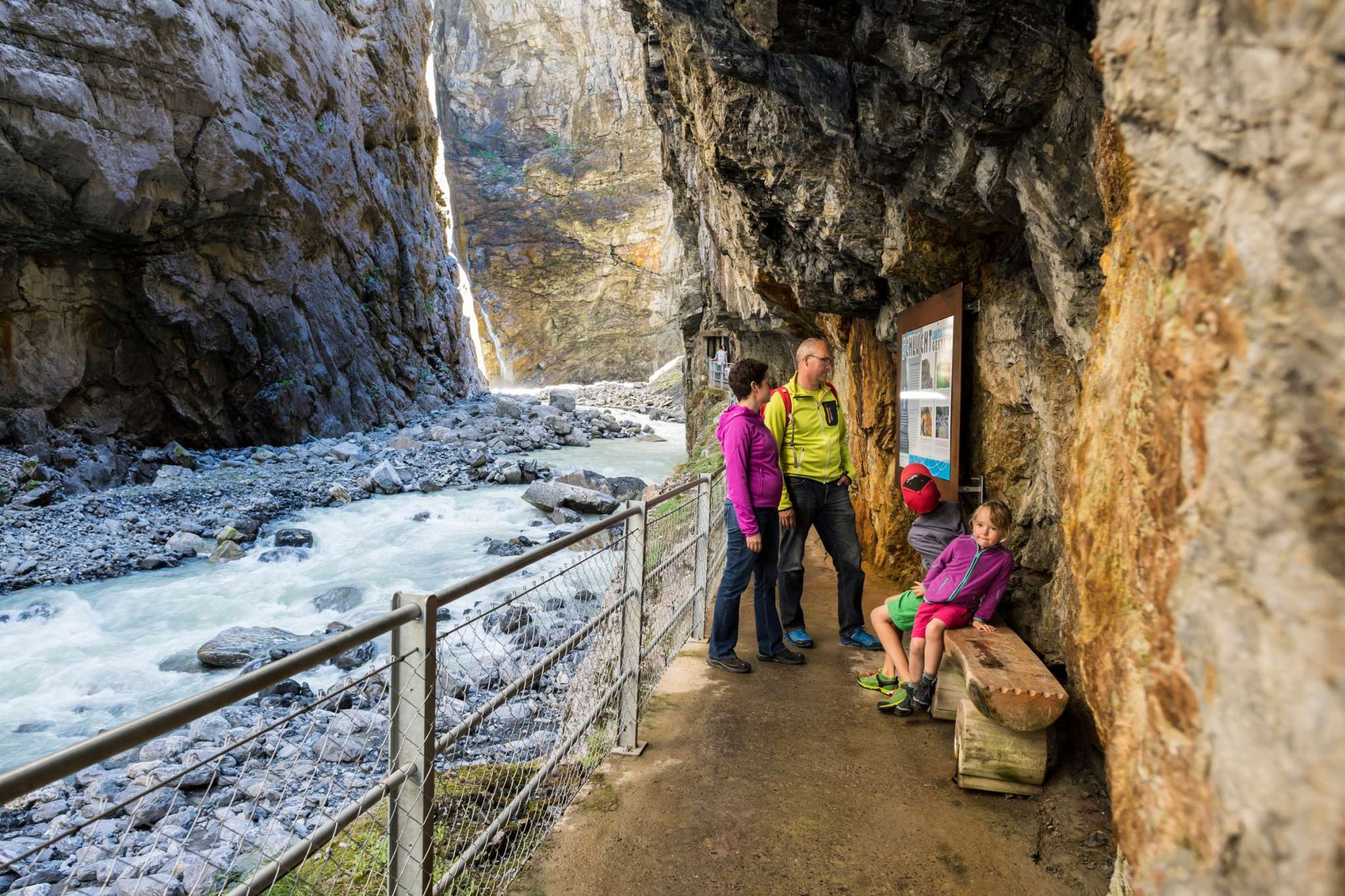 Ein imposantes Kunstwerk der Natur! Die 300 m hohen Felswände der Gletscherschlucht zeugen von der unglaublichen Kraft des unteren Grindelwaldgletschers. Leider existiert dieser Gletscher nicht mehr. Der Steg tief hinein in die Schlucht bietet dir einen einmaligen, echten Blick in die Vergangenheit. Das rauschende Wasser der Lütschine, der stetige leichte Wind sowie die eindrücklichen Lichtverhältnisse machen diesen Ort für alle Sinne spannend. Die Gletscherschlucht ist in diverse Themen wie Geologie, Gletscher, Wasser oder Mythen unterteilt – eine spannende Erfahrung für jedes Alter. Sie ist leicht und bei jedem Wetter zugänglich. Eines der Highlights ist das 170 m2 grosse Spiderweb. Das begehbare, über die Schlucht gespannte Netz bietet eine einmalige Sicht und Nervenkitzel zugleich.