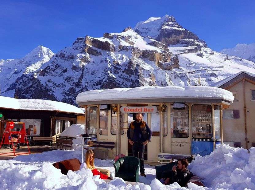 Bei einem Skitag gehört ein Apéro immer dazu. Direkt am Ende der Skipiste – hinter dem Hotel Jungfrau – befindet sich die Gondelbar mit einer gemütlichen Atmosphäre und viel Charme.