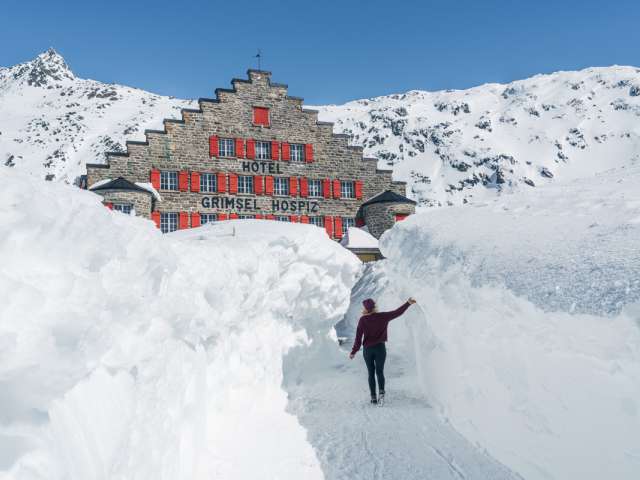 Im Grimsel Hospiz treffen Moderne und Vergangenheit aufeinander. Hier stand bereits 1142 das erste urkundliche erwähnte Gasthaus der Schweiz. Anno 1932 machte es als erstes elektrisch beheizbares Haus Europas Furore. Dieser Umweltgedanke verpflichtete auch bei der umfassenden Renovation des Hotels von 2008 bis 2010 – bewusst und umweltschonend wird das gesamte Haus mit der Abwärme aus der Stromproduktion beheizt. Denn als historisches Viersterne-Alpinhotel thront das Haus sozusagen im Herzen des KWO-Gebiets majestätisch über dem Grimselstausee.
