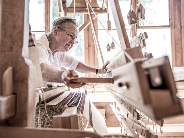 Die farbenfrohen Stoffe mit ihren unverkennbaren Mustern werden seit uralten Zeiten im Haslital von Hand gewoben.