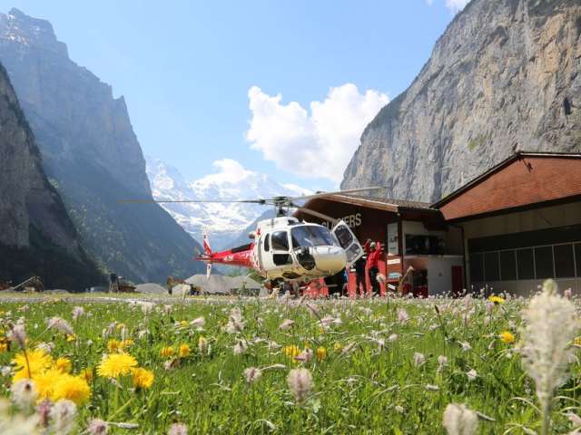 Air-Glaciers wurde 1965 aus dem Wunsch heraus gegründet, Leben zu retten. Heute betreibt das Unternehmen sechs Basen in der ganzen Schweiz, von denen aus sowohl zu Rettungseinsätzen, wie auch zu Passagier- und Transportflügen gestartet wird. Die Basis in Lauterbrunnen wurde 1972 eröffnet und bietet folgende Dienstleistungen an: