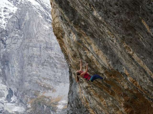 Vom Dorf Gimmelwald führt ein ca. 50-minütiger Fussmarsch zum Fuss der Wand.
