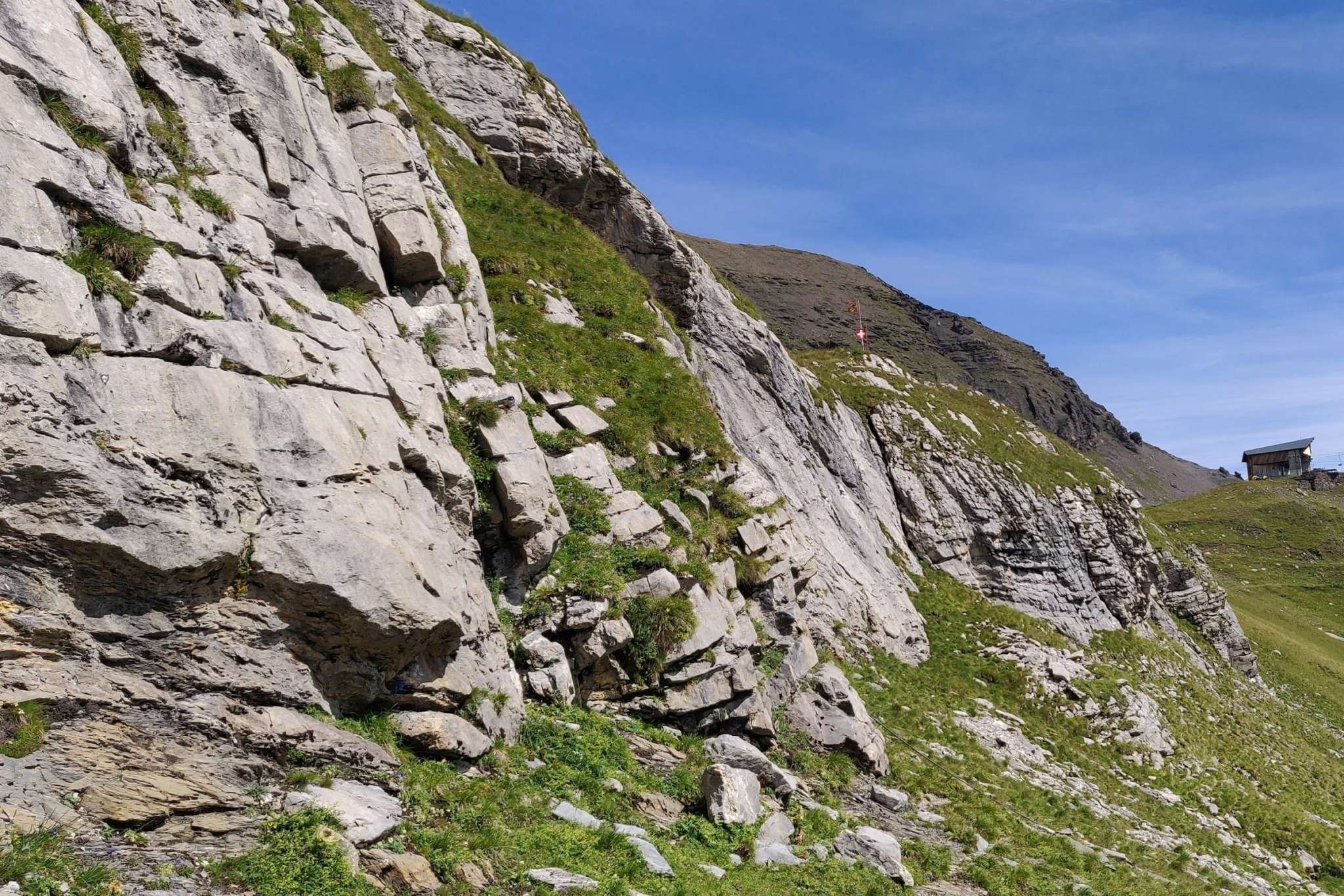 Wer den ganzen Tag mit Klettern verbringt, kann sich gleich oberhalb der Routen, in der Schilthornhütte stärken.