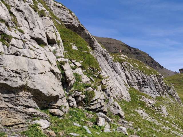 Der Klettergarten befindet sich ein paar Gehminuten unterhalb der Schilthornhütte.
