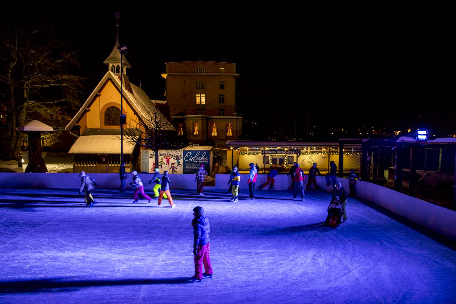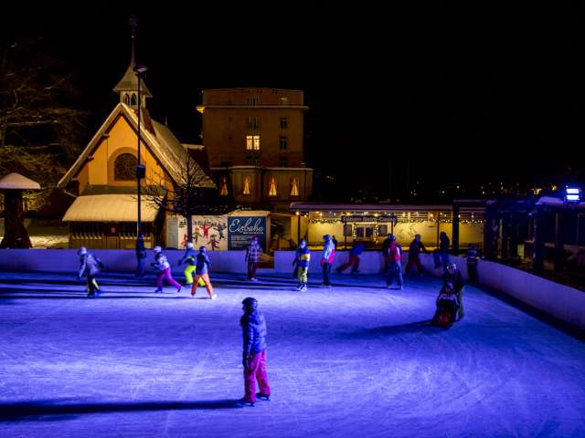Wenn es so richtig kalt ist, wird auf dem Casinoplatz - im Dorfzentrum von Meiringen - eine Eisbahn gebaut. Bis weit in den Abend hinein kann die ganze Familie dem grossen Spass auf Kufen frönen, nebenbei etwas Feines konsumieren und dabei die winterliche Atmosphäre von Meiringen erleben. Schlittschuhmiete vor Ort.