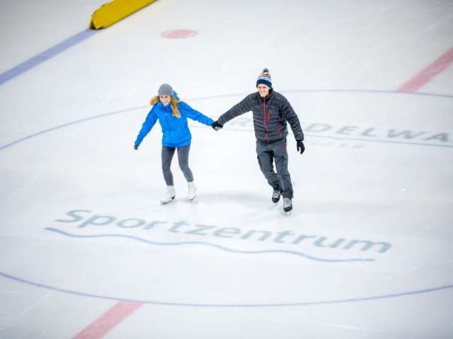 Die Kunsteisbahn im Sportzentrum lädt zum Schlittschuhlaufen oder Eishockeyspielen – und dies von Ende Juli bis Ende April.