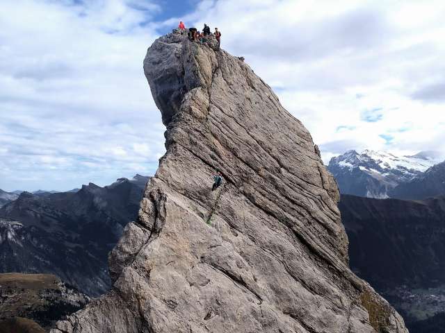 Die klassische Klettertour im Berner Oberland erlaubt ein unvergleichliches Erlebnis mit Sicht auf die umliegenden Bergketten. Die exponierten Gipfel sollten keinem Kletterer vergönnt sein.
