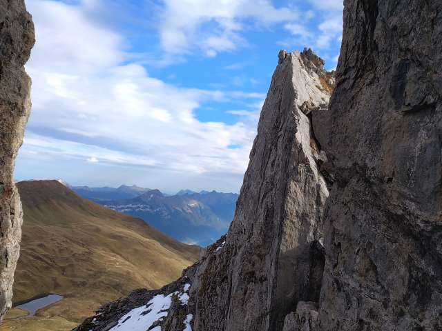 Bevor du vom letzten Zacken aus in den Sattel abseilen, geniessst du noch einmal die herrliche Aussicht bei einem ausgiebigen Gipfelrast.