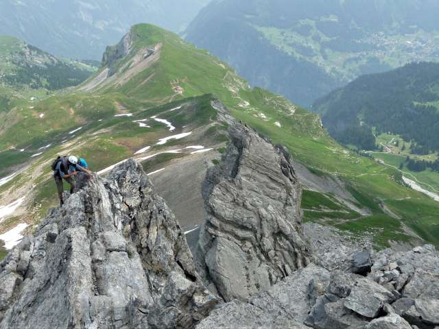 Nachdem alles Material montiert ist, beginnt die herrliche Kletterei über die Zipfelmütze, das Kleine und das Grosse Lobhorn.