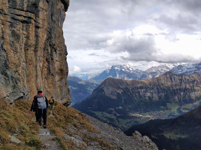 Eingepackt hast du ein 60m Seil, 10 Express-Karabiner und ein paar Schlingen. Damit kommst du bequem über die Routen in den Schwierigkeitsgraden 2b bis 4c. Da viele Passagen ein alpiner Weg und keine Kletterroute sind, gehören auch die Bergschuhe ins Gepäck.