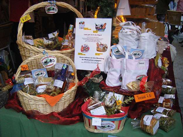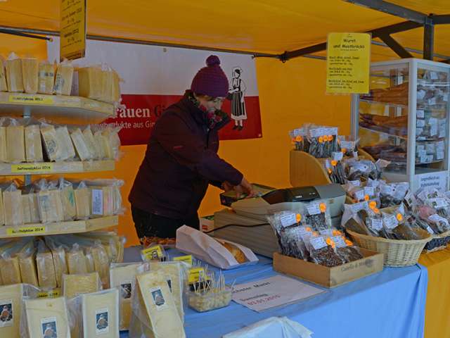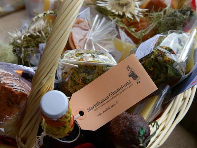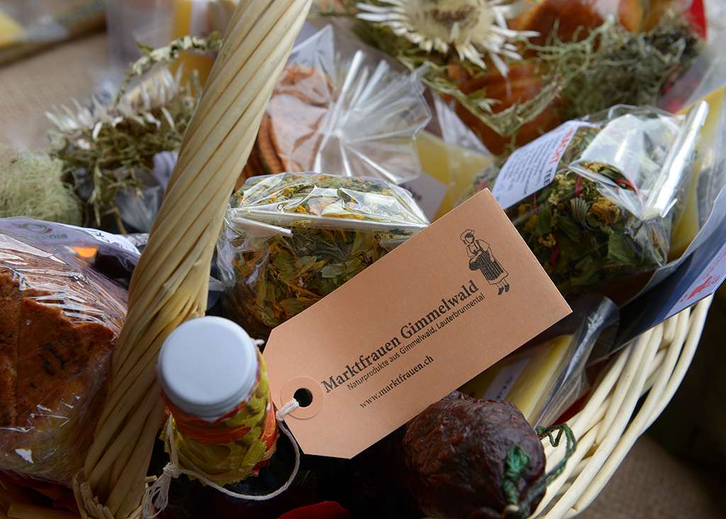 Während der Winterzeit präsentieren und verkaufen die Gimmelwalder Marktfrauen ihre Naturprodukte am Marktstand, neben dem Restaurant Stägerstübli an der unteren Dorfstrasse Mürren.