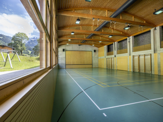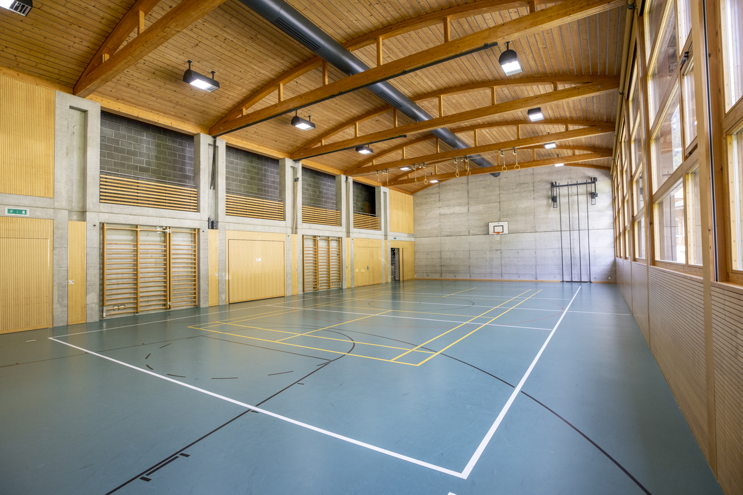 - Sportgeräte (Grundausstattung Barren, Schwedenkästen, kleine und grosse Matten, Volleyball und Badmintonnetz)