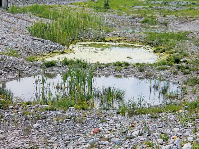 Auen sind faszinierende Bereiche von Bächen, Flüssen und Weihern, die periodisch von Wasser überflutet werden. Bei Hochwasser wird eine Aue überschwemmt, so dass immer wieder neue kiesige Flächen entstehen, und ständig neue Lebensräume für Pioniere unter den Pflanzen und Tieren geschaffen werden. Der Funtenensee, die Tümpel auf den kiesigen Pionierflächen und der vernässte Wald sind wichtige Lebensräume für die geschützten Amphibien und andere Tiere, die es hier zu entdecken gibt.