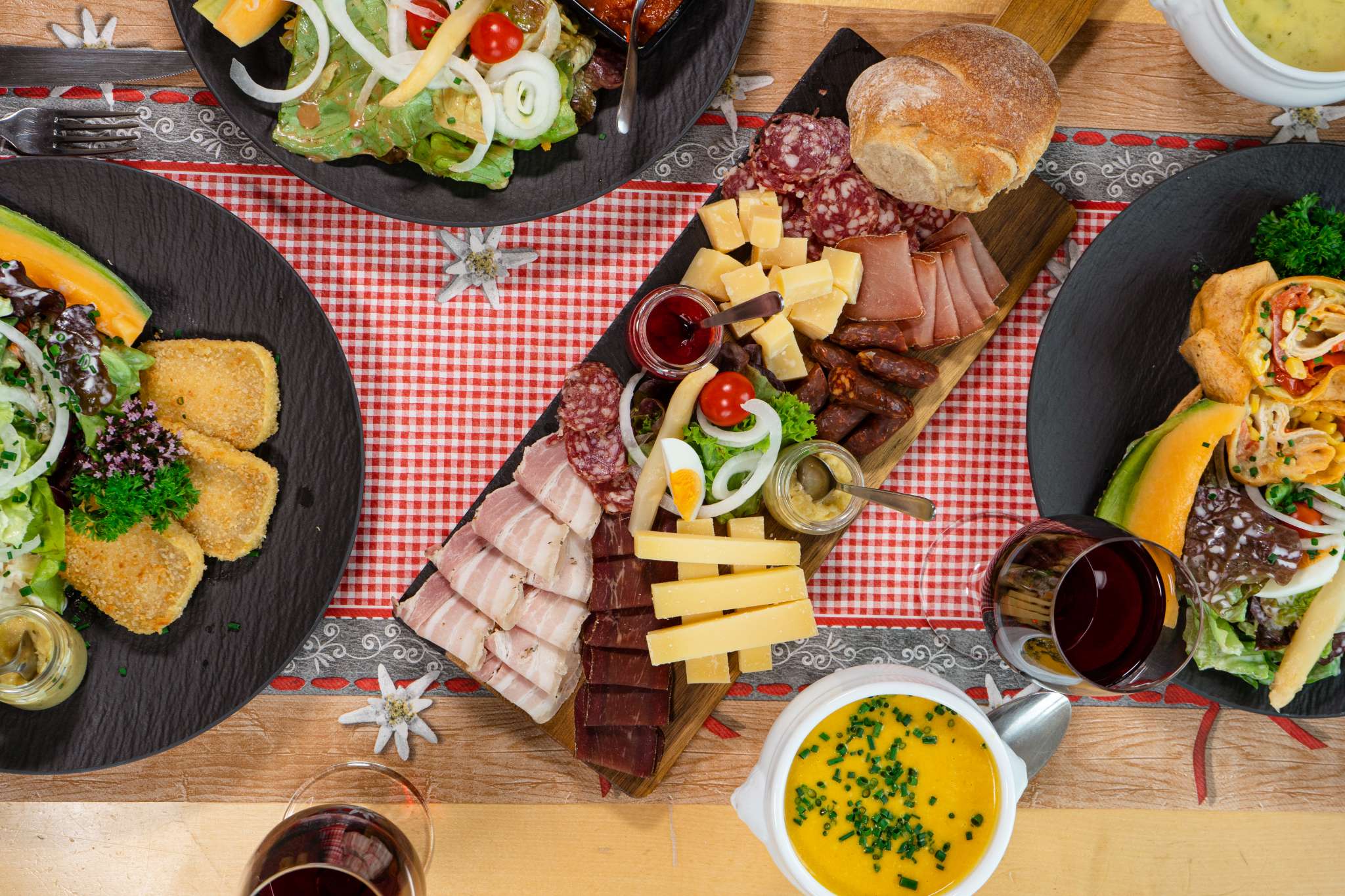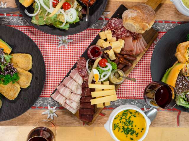 Geniesse das Panorama bei einer Mahlzeit auf der Sonnenterrasse oder im heimeligen Stübli. Das Bergrestaurant befindet sich inmitten des Wandergebietes – und unmittelbar neben dem einzigartige Abenteuerspielplatz Flower Park. Ein Paradies für Kinder.