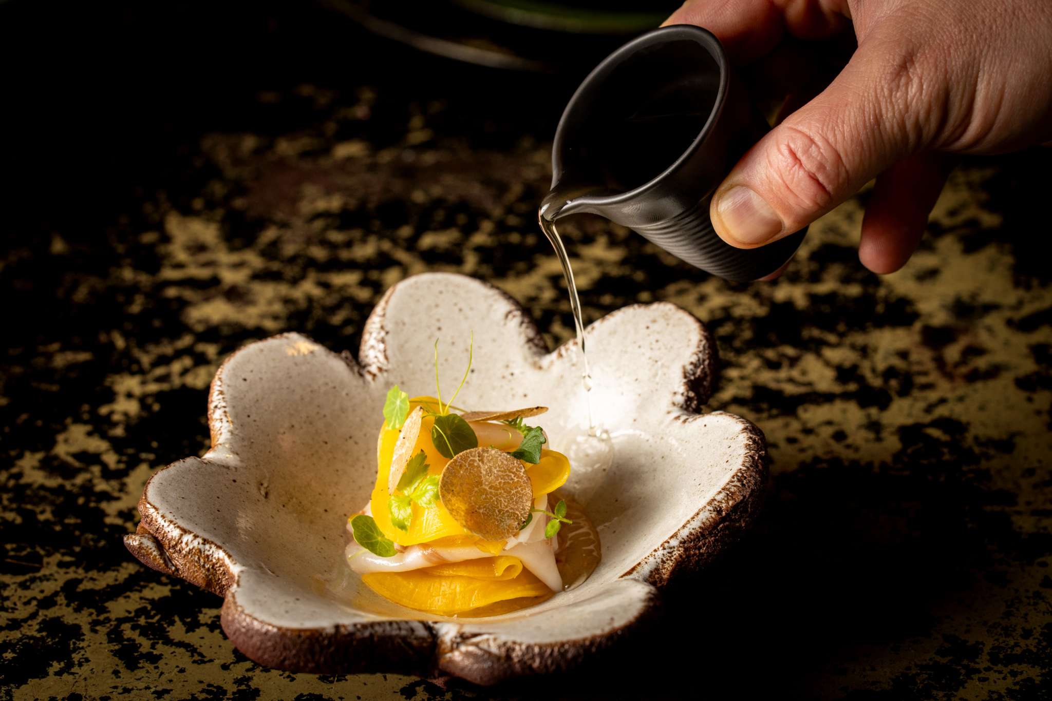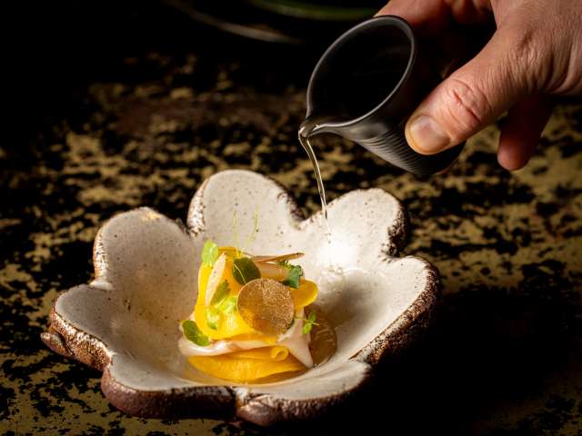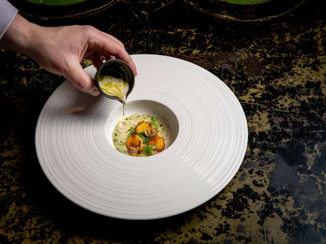 Der moderne kulinarische Stil unseres Küchenchefs Dávid Imre Rózsa zeichnet sich durch technische Raffinesse sowie reduzierte und zugleich geschmacksvolle Kompositionen aus. Dávid wurde von der Guide MICHELIN 2025 Auswahl mit einem Stern und von Gault&Millau mit 16 Punkten ausgezeichnet.