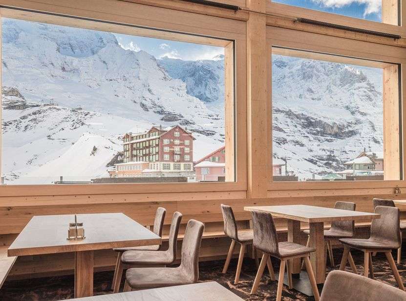 Die grosszügige Fensterfront erlaubt es von jedem Sitzplatz im Restaurant aus einen Blick auf die weltbekannte Eigernordwand zu erhaschen. Die Terrasse rund ums Haus sonnt sich den ganzen Tag in herrlicher Bergsonne.