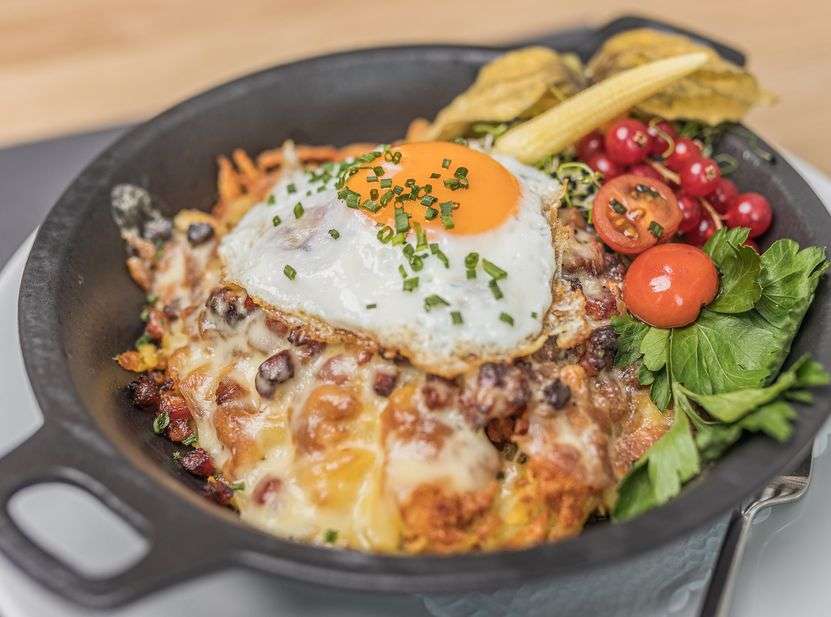 Der Betrieb besteht aus einer Selbstbedienung sowie einem bedienten Restaurant. Viel Holz kombiniert mit moderner Technik und Beleuchtung ergibt den perfekten Mix für ein echtes Alpenchic-Erlebnis. Das Speiseangebot besteht aus Klassikern der Schweizer Küche mit dem Hüttenzauber-Extra verfeinert. Ergänzt wird das Angebot mit einer Auswahl an asiatischen Spezialitäten.